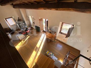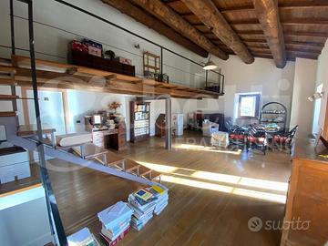 Vallinsu: in posizione tranquilla a 15 km dalla città loft su due livelli. Piano terra spazioso ambiente con cucina e bagno con pavimento in cotto. Tramite una comoda scala accediamo al primo piano in un grande ambiente finestrato con pavimento in parquet. L'ambiente è stato in parte soppalcato. Il soffitto è rivestito con pregiate travi in legno di noce.