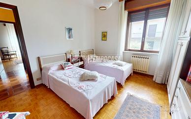 Dal disimpegno d'ingresso si giunge al corridoio della zona notte (dotato di condizionatore con pompa di calore), dove troviamo camera da letto, 2 camere matrimoniali, rifinite in parquet, una delle quali è dotata anche di balconcino privato ed infine bagno di servizio finestrato con vasca.