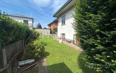 Completa la soluzione il giardino di circa 350 mq che si sviluppa intorno alla casa e più precisamente, su 3 dei 4 lati, in quanto sull'ultimo lato troviamo il corsello in beola che tramite cancello elettrico, da accesso al box.