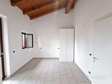 Salendo al primo piano, interamente caratterizzato da splendide travi a vista, si sviluppa la zona notte: una camera matrimoniale padronale con ampia cabina armadio e accesso a un terrazzo riservato, una seconda camera matrimoniale illuminata da finestre Velux, un bagno completo con vasca e un corridoio arricchito da un utile soppalco perfetto per lo stoccaggio.