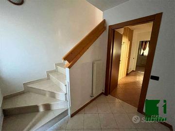 L'immobile disposto su tre livelli è così composto: a piano terra cortile con accesso a garage utilizzabile come posto auto, ripostiglio, bagno finestrato, cantina e giardino privato. Al primo piano luminoso soggiorno con accesso a terrazzo, cucina abitabile semi separata completa di balcone, disbrigo, ripostiglio e secondo bagno finestrato. Ad ultimo piano stanza matrimoniale, bagno finestrato, studio/ripostiglio e seconda stanza matrimoniale completa di balcone.