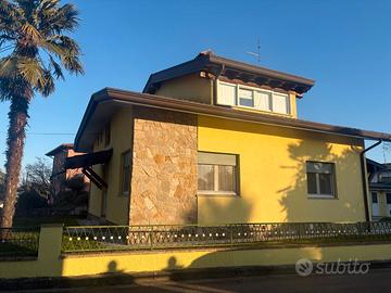 In tranquillo contesto residenziale, villa singola completamente ristrutturata, disposta su due livelli, composta al piano terra da ingresso su zona pranzo salotto con caminetto centrale, cucina a vista con accesso al portico esterno, disimpegno, camera matrimoniale, bagno con vasca idromassaggio e una comoda cabina armadio. Al primo piano due camere, disimpegno, studio, bagno con box doccia e terrazzo. All'esterno dependance con zona lavanderia, bagno con box doccia e stanza adibita a taverna con caminetto. E' dotata di climatizzatori, serramenti in pvc con vetrocamera completi di zanzariere e avvolgibili, travi a vista al primo piano e riscaldamento tradizionale con caldaia a condensazione . Scoperto di proprietà. Parzialmente arredata. Questa villa indipendente è pronta per essere abitata e immersa nella tranquillità.