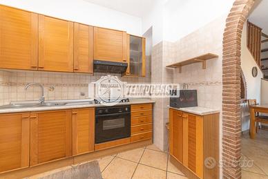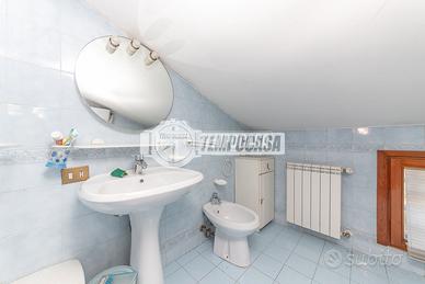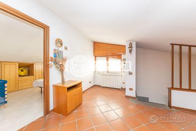 Proponiamo in un appartamento in villa che si racconta come una casa che aspetta di essere vissuta di nuovo, pronta ad accogliere nuovi progetti e nuove emozioni. Distribuita tra il primo e il secondo piano, gode di una piacevole indipendenza grazie all'assenza totale di condominio, con la libertà di una quadrupla esposizione e affacci aperti su quattro lati. La palazzina, rifinita esternamente in cortina, conserva un'eleganza solida e senza tempo, valorizzata dalla presenza di una corte esterna che introduce con discrezione all'abitazione. Al primo piano si viene accolti da un ampio soggiorno luminoso, uno spazio pensato per la convivialità e il relax, che dialoga con una cucina abitabile dove il tempo sembra rallentare tra pranzi in famiglia e colazioni lente. Il disimpegno accompagna verso la zona notte, dove si trova un bagno e una camera matrimoniale impreziosita dal parquet, intima e confortevole, completa di bagno ensuite. Due terrazzi donano luce e respiro agli ambienti, offrendo scorci all'aperto da vivere in ogni stagione. Salendo al piano superiore, l'atmosfera si fa ancora più calda e raccolta. Qui trovano spazio due camerette, un bagno e un ambiente aperto, una zona giorno, dominato dal camino, vero cuore della casa. Il pavimento in cotto aggiunge carattere e richiama un gusto autentico, creando un luogo perfetto per momenti di relax, lettura o condivisione nelle sere d'inverno. La casa si presenta in buono stato, con la possibilità di essere personalizzata secondo i propri desideri, trasformandola in una dimora su misura. A completare la proprietà, é possibile acquistare un comodo box di circa 40 mq al prezzo di €55.000 , ideale non solo per l'auto ma anche come spazio di deposito o laboratorio. Una soluzione che unisce indipendenza, spazio e potenzialità, pensata per chi cerca non solo una casa, ma un luogo da - Classe: G - IPE: 175.00 kWh/mq anno