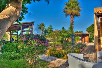 Soluzioni Immobiliari propone in vendita lussuosa villa con giardino avente una superficie di circa 80 mq. situata a San Vito Lo Capo (TP), precisamente in via Piano di Sopra, all'interno del suggestivo residence "I Giardini di San Vito".