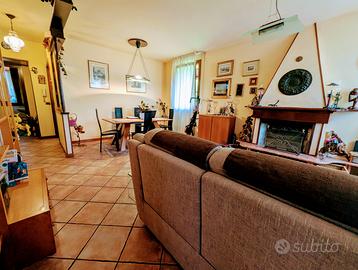 composta da ingresso, soggiorno con caminetto, cucina abitabile, 3 camere, 3 bagni, balcone, garage ampio, cantinola e bellissimo e coccolo giardino privato, tipico dell'ambiente collinare. Vista sui colli. Agenzia Immobiliare Beda 0497968635
