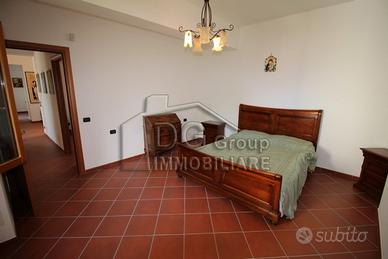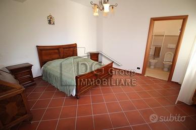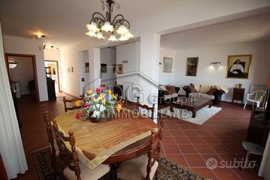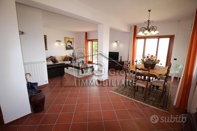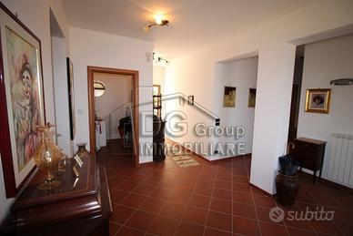 La villa immersa in un contesto paesaggistico mozzafiato, inserita all'interno di un ampio lotto di terreno di circa 1700 mq comprensivi di piazzali che circondano l'intera proprietà, dispone di un comodo magazzino al piano terra di circa 180 mq e doppio ingresso con cancelli automatici.