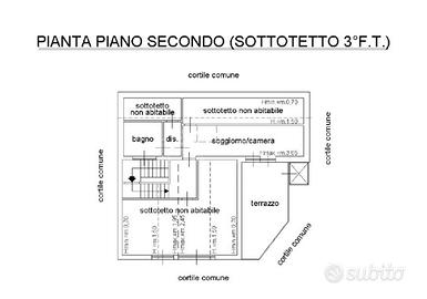 Il piano superiore mansardato si dispone in due aree, la prima dotata di bagno e sfogo esterno sul terrazzo, la seconda attualmente allo stato grezzo.