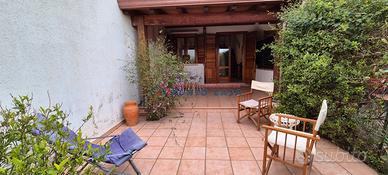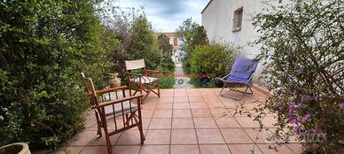 - ingresso da giardino e veranda con tettoia su soggiorno - pranzo, con scala in legno conducente al primo piano;
