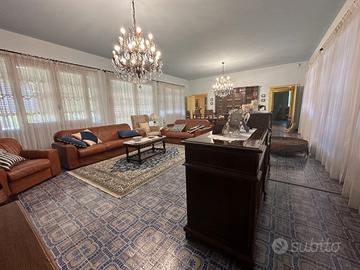 MARANO Immersa nel verde di un parco piantumato con importanti alberature di circa 10.000mq, Ampia Villa dei primi anni '70, disposta tutta al Piano Terra e composta da ingresso, soggiorno di 54mq con caminetto, cucina abitabile, disimpegno, 3 camere matrimoniali ognuna con bagno padronale, lavanderia, garage doppio e portico per 2 posti auto coperti.