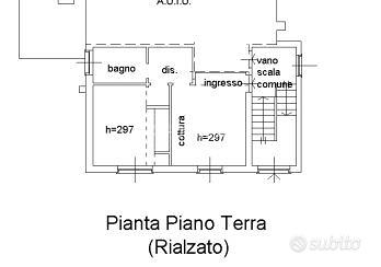 SECONDO APPARTAMENTO posto al PIANO RIALZATO: INGRESSO su SOGGIORNO di 16 mq con CUCINA A VISTA, DISIMPEGNO che conduce alla CAMERA di 12 mq e al BAGNO con vasca. L'appartamento è direttamente collegato ad una cantina sfruttata come TAVERNA.
