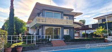 Mascalucia centro - in zona servita ad 1 km da Corso San Vito, proponiamo la vendita di un'elegante villa indipendente con piscina, ingresso carrabile ed ampi spazi esterni mq.800. L'immobile è composto da n. 2 appartamenti gemelli ciascuno di mq. 115, siti al piano terra e 1°piano, così composti: ingresso su ampio salone, cucina abitabile, 2 camere da letto, ripostiglio e tripli servizi. Gli immobili sono unificabili ma attualmente indipendenti fra loro. Quadrupla esposizione, libera, disponibilità immediata, n. 4 posti auto. Nelle immediate vicinanze di Pedara, Trecastagni, Tremestieri, San Giovanni La Punta, Massannunziata, Nicolosi. X info: Re Casa