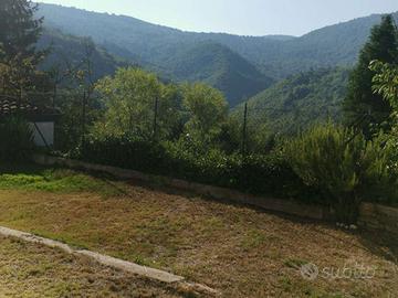 Il primo piano ospita la zona abitativa: cucina abitabile, camera da letto, bagno e un accogliente soggiorno con camino funzionante. Completano l'offerta un piano sottotetto accessibile tramite scala interna, un terrazzo panoramico con vista sulla valle e un terreno circostante di circa 500 mq.