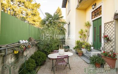 Il giardino privato, che avvolge l'intera proprietà, è un'oasi di relax con un raffinato gazebo per pranzi all'aperto e un pratico prefabbricato ideale come deposito o spazio hobby.