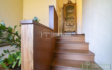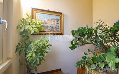 Al piano terra troviamo ambienti funzionali che aumentano il comfort quotidiano: un ampio studio climatizzato, una lavanderia pratica, un bagno di servizio e un soggiorno doppio reso accogliente dalla grande luminosità. La cucina, con vista diretta sul giardino, può essere separata dal living tramite porta scorrevole. Una scala elegante e finestrata conduce al piano superiore.