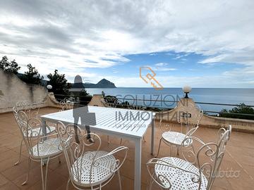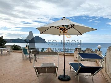 La villa si sviluppa su due livelli avente una superficie complessiva di circa 200 mq. ed è composta al piano superiore da cucina abitabile con pertinente veranda esterna coperta, disimpegno con armadi incassati, ripostiglio, due ampie camere da letto, un comodo bagno con doccia, doppi servizi e finestra, ed un grande salone con grandi aperture sul mare, il piano inferiore accessibile da due ampie aperture è composto da un grande vano ed un comodo bagno con doccia, doppi servizi, finestra e zona lavanderia.