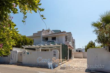 Gallipoli - Salento Favolosa villetta ristrutturata con ampi spazi esterni e terrazzo, a pochi passi dalle spiagge dorate. Casa Service Plus propone in vendita una splendida villetta indipendente su due livelli, recentemente ristrutturata e pronta da vivere tutto l'anno, non solo nel periodo estivo. La dimora, pari al nuovo, offre comfort, benessere e una disposizione armoniosa degli ambienti, ideale per chi cerca una casa accogliente e funzionale vicino al mare. Composizione: Piano Terra: all'ingresso, un ampio spazio esterno verandato conduce alla zona living con angolo cottura a vista. Un disimpegno separa le due camere da letto e il bagno. Una scala interna collega comodamente il piano superiore. Piano Primo: accessibile anche da una scala esterna, ospita due spaziose e luminose camere da letto, una cucina, due bagni (di cui uno adibito a lavanderia) e un ulteriore spazio esterno abitabile. Terrazzo: dal primo piano si accede al grande terrazzo vivibile, perfetto per serate all'aperto grazie alla possibilità di installare gazebo, divani e barbecue, godendo della massima privacy. Spazi esterni e posizione: La villetta dispone di oltre 200 mq di spazio esterno, in parte verandato e in parte adibito a parcheggio privato, fino a tre auto. Un elemento fondamentale, soprattutto considerando che la zona di Baia Verde è soggetta a ZTL nel periodo estivo. Posizione strategica, a soli 900 metri dalla superstrada, che consente di raggiungere facilmente il centro di Gallipoli e i principali paesi limitrofi del Salento. Dettagli aggiuntivi: Superficie interna: 122 mq calpestabili Spazi esterni di proprietà esclusiva: oltre 150 mq Climatizzazione in tutti gli ambienti Sistema di videosorveglianza Classe energetica: E Ottime finiture e cura dei dettagli Una soluzione abitativa ideale per chi desidera vivere il Salento in ogni stagione, con tutti i comfort, l'indipendenza e la vicinanza al mare. Rif. annuncio: GD-330