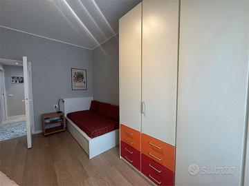 In palazzo degli anni '60 con ascensore, proponiamo al quarto piano, camera da letto singola di circa 13 mq completamente arredata. La stanza, con letto singolo, si trova all'interno di un appartamento molto luminoso e tranquillo, arredato a nuovo e completamente ristrutturato con cucina abitabile, dotata di lavastoviglie, piano ad induzione, microonde. Ripostiglio, due balconi e due bagni.