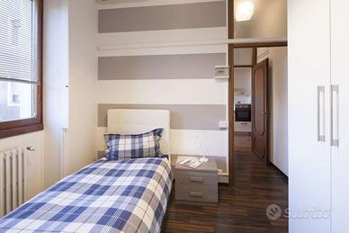 In palazzo degli anni '70 con doppio ascensore e servizio di portineria proponiamo, al terzo piano, stanza di 12 mq completamente arredata a nuovo: letto singolo, scrivania, sedia e ampio armadio.