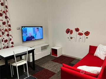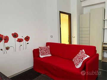 In tranquillo contesto condominiale con ascensore, proponiamo al primo piano, ampia camera matrimoniale di circa 20 mq, completamente arredata con divano letto, cabina armadio e angolo cottura a vista.