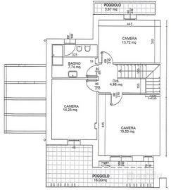 La zona notte al primo piano offre due camere matrimoniali - entrambe con accesso diretto ad un grande terrazzo abitabile di circa 16 mq -, una camera singola molto ampia (13 mq) e doppi servizi finestrati tra cui quello padronale riservato alla master room.