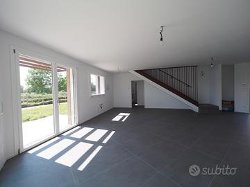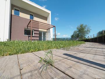 MOGLIANO VENETO - PRONTA CONSEGNA - Zona residenziale signorile e curata - Nuova villa di testa con eccellente esposizione e sita in tranquillissimo contesto, composta da ingresso, ampio salone con cucina open space luminosissima, disimpegno, bagno e garage comunicante con l'abitazione. Al piano primo tre comode camere con pavimentazione in pregiatissimo parquet di rovere, doppi servizi e ampia terrazza di circa 30 mq. Completa la proposta il giardino privato di circa mq. 300 e pergolato ideale per le cene estive. L'immobile è provvisto di ventilazione meccanica in tutti i locali compresi i bagni, impianto di raffrescamento in tutte le camere e soggiorno, impianto di allarme volumetrico e perimetrale, impianto fotovoltaico da 6 Kw e cancello carrabile elettrico. Cl. En A4 Epgl, nren 16,08 kWh\mq anno. €. 465.000, 00. Rif. 50