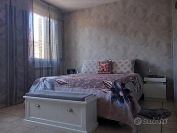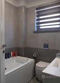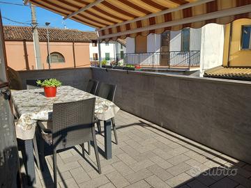 La casa è su 3 livelli, il pianoterra arredato a sala tv - salotto/soggiorno, bagno con vasca, sopra cucina abitabile con terrazzone soleggiato, che affaccia sulla corte privata interna, dotato di grande tenda da sole, camera matrimoniale e bagno con doccione, ed infine, al secondo piano, una matrimoniale ed una singola, e piccolo ripostiglio/studiolo finestrato. Al pianoterra inoltre c'è un'ampio ambiente (destinazione d'uso garage), che attualmente è adibita ad ampio ingresso con lavanderia, con lato scorrevole d'accesso alla corte interna.