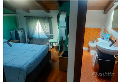 za. primo piano :zona notte con camera, bagno grande con vasca idromassaggio con accesso ad un balcone e grande terrazza, inoltre, sempre al primo pianol,troviamo lavanderia finestrata con doccia grande. secondo piano:zona mansarda alta, con 2 camere e un bagno finestrato. Casa con ampi spazi esterni , vicino a scuole ,asilo ,supermercati ecc...Completa la Propieta un garage.