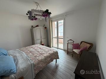 Santa Maria a Monte, loc. Montecalvoli Basso. Porzione di bifamiliare stile duplex posta al piano primo con esposizione su quattro lati. Costruzione ultimata nel 2017 a cui si aggiungono vari interventi relativi al SUPERBONUS 110 % effettuati poi nel 2022; l'immobile è dotato quindi di tutte le certificazioni di legge riguardanti gli impianti esistenti. La parte abitativa si sviluppa interamente su un piano ed è composta da un ampio soggiorno open-space con terrazza abitabile coperta posta sul lato Sud del fabbricato ideale per pranzi e cene all'aperto, mentre la cucina rimane separata e a vista, ma pu essere tranquillamente "chiusa" con parete ed infisso idonei data la metratura (circa 15 mq). Proseguendo nella zona notte, tramite il disimpegno, troviamo tre camere da letto, tutte con balcone, il bagno con doccia e finestra e due ripostigli, uno con attacco per lavatrice, l'altro al momento utilizzato come lavanderia con predisposizioni per un secondo servizio. Completano la soluzione 160 mq di resede esclusivo suddiviso tra giardino ed una parte con auto-bloccanti dove è possibile parcheggiare comodamente due auto. Muratura in Poroton, portoncino blindato, infissi interni in PVC con doppio vetro ed esterni in alluminio, pavimento radiante in grès porcellanato effetto legno, predisposizioni per impianto di allarme e condizionamento, addolcitore, pompa di calore, pannelli fotovoltaici (16 unità per un totale di oltre 6 kW) con batteria di accumulo, wall box per ricarica veicoli elettrici e ibridi plug-in. Casa green "gas free", che utilizza esclusivamente fonti di energia rinnovabile per il riscaldamento, l'acqua calda e la cottura senza ricorrere a gas naturale o altri combustibili fossili. A 5 km dal centro di Pontedera, a breve distanza dalla FI-PI-LI sia in direzione Pisa che in direzione Firenze. Disponibile a partire da Giugno 2026.