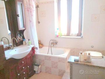 Villetta indipendente, vista mare, con giardino di proprietà ed accesso auto. Disposta su 2 livelli: al piano terra 3 vani cantina con ingresso indipendente ed altezza 2,80 m. con possibilità di trasformarla in abitativo; al primo piano abitazione con ingresso indipendente, composta da atrio, cucina abitabile con terrazzo, soggiorno con secondo terrazzo, 2 camere da letto di cui una con cabina armadio, bagno finestrato. Al piano primo è stato fatto il cappotto termico. La casa è dotata di impianto fotovoltaico.