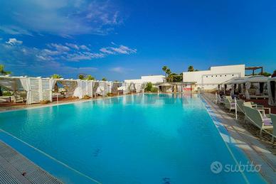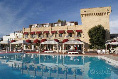Rif: 36681071-4 MULTIPROPRIETA' IN VENDITA A CASTRIGNANO DEL CAPO - SANTA MARIA DI LEUCA Immerso in un paesaggio suggestivo e situato su un'altura poco distante dal centro di Leuca, il Messapia Hotel & Resort è un raffinato complesso alberghiero a 4 stelle, circondato da rigogliosi oliveti e affacciato su una splendida vista panoramica, a soli 800 metri dal mare. La sua posizione privilegiata, latmosfera elegante e la qualità dei servizi offerti lo rendono ideale per una vacanza allinsegna del comfort. Un elemento distintivo della struttura è l'edificio principale, che ospita la hall, il ristorante, la piscina di acqua salata e altri servizi, la cui architettura richiama fedelmente la tradizione delle masserie fortificate con torre, antiche costruzioni salentine un tempo utilizzate come sistema difensivo. Il resort si armonizza perfettamente con lambiente ionico-salentino, grazie ai colori, ai profumi della macchia mediterranea e alla presenza delle Pajare. In linea con questa filosofia, le camere sono arredate con il Midollino, un materiale semplice e funzionale che valorizza lartigianato locale. Il Messapia Hotel & Resort offre una vasta gamma di servizi per un soggiorno allinsegna del relax e del benessere. Gli ospiti possono concedersi trattamenti esclusivi presso il centro benessere, affidarsi a esperti del settore nel centro estetico, o rilassarsi nella zona green immersa tra le pajare e gli uliveti secolari, con solarium e area giochi per bambini. La struttura vanta anche una galleria darte situata allinterno della Torre, una lobby-bar panoramica dove gustare aperitivi accompagnati da una selezione di rhum e sigari cubani, e una champagneria che propone oltre 400 cocktails. Per gli amanti della buona cucina, sono disponibili una braceria, una pizzeria e unosteria di mare. Il vero gioiello del resort è il Roof Garden lInfedele, dove, su richiesta, vengono organizzate cene e serate a tema, regalando agli ospiti una vista...