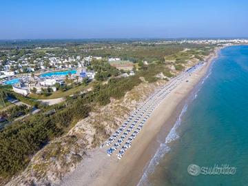 Vendesi Villetta in multiproprietà a Torre Rinalda (LE) a pochi Km da Lecce, all'interno di villaggio con accesso privato alla spiaggia di sabbia attrezzata, due piscine con solarium di cui una per bambini, campi di calcetto, tennis, basket, beach volley, animazione, mini e junior club. La struttura include due Ristoranti, Bar, Market.