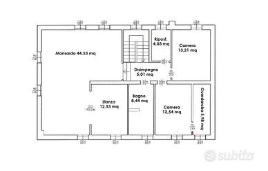 Il piano superiore è suddiviso in una grande matrimoniale dove è stata creata anche una stanza guardaroba finestrata, un ulteriore stanza doppia, un bagno ed un ampio ripostiglio.