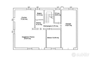 Di seguito una stanza studio/magazzino e un bagno/lavanderia con comunicazione ad un garage doppio.