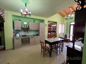 La casa principale si compone di un accogliente cucina-soggiorno, un ampio salone, quattro camere da letto di cui una con bagno in camera, un bagno principale e una spaziosa veranda esterna di circa 35 mq, ideale per momenti di relax all'aperto. Dal primo piano si accede a una terrazza tramite scala esterna, offrendo una vista suggestiva sulla campagna circostante. Completa la proprietà una dependance di circa 20 mq, composta da un piccolo angolo cottura, una camera da letto e un bagno, perfetta come spazio per ospiti o per il personale di servizio.