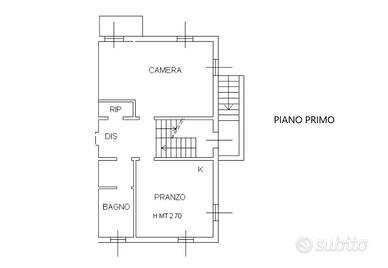 Il secondo ingresso indipendente, invece, si trova al primo piano e si apre su un disimpegno centrale che separa in modo armonioso i diversi ambienti: troviamo un soggiorno con angolo cottura, un bagno finestrato completo di tutti i servizi, un ripostiglio e un'ampia camera da letto con accesso diretto al balcone, ideale per godersi momenti di relax all'aperto.
