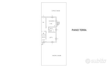 Al piano terra si accede a un comodo ingresso che conduce a un pratico ripostiglio e a un disimpegno dal quale si sviluppa il soggiorno con angolo cottura, un secondo ripostiglio, una camera da letto e un bagno.