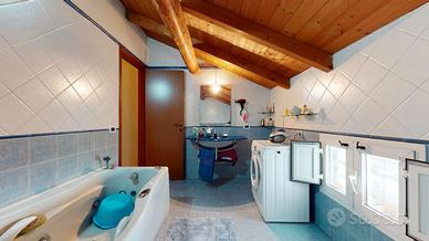 Salendo al secondo piano, un disimpegno conduce a due spaziosi sottotetti e a un ulteriore corridoio che porta a un terzo ambiente sottotetto, un ripostiglio e una lavanderia. Tuttavia, l'attuale proprietario ha saputo sfruttare con intelligenza e gusto gli spazi, trasformando il primo piano in una vera e propria zona giorno accogliente e funzionale, con un ingresso che si apre su un ampio e luminoso soggiorno con accesso diretto al balcone, una cucina abitabile molto spaziosa, un bagno e un pratico ripostiglio. Al secondo livello, i tre sottotetti sono stati adibiti a camere da letto, mentre la lavanderia è stata trasformata in un grande bagno dotato di vasca e rifinito con cura.