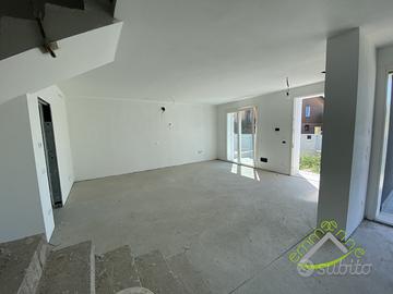 MALCONTENTA: in tranquillo quartiere residenziale, nuova porzione di bifamiliare sviluppata su soli due livelli e caratterizzata da generosi spazi abitativi, composta da: ingresso, soggiorno - cottura open space di 51 mq con ampia vetrata scorrevole con affaccio su giardino di proprietà; disimpegno, tre camere matrimoniali, 2 bagni, ripostiglio, lavanderia, guardaroba, garage di 26 mq e giardino di 200 mq. La soluzione si distingue per la sapiente disposizione degli spazi interni e dall'alto livello di risparmio energetico offerto dalle finiture e tecnologie di cui è dotata; ideale per chi ricerca qualità, comfort abitativo e un sicuro investimento per il futuro della propria famiglia. Immobile attualmente allo stato grezzo, classe energetica di progetto A3.