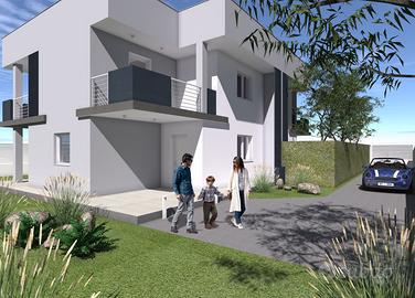 impianto fotovoltaico, impianto solare termico per acqua calda sanitaria Daikin, riscaldamento e raffreddamento canalizzato ad aria Daikin, predisposizione impianto di allarme e videosorveglianza, videocitofono, cancello motorizzato.