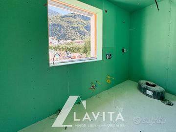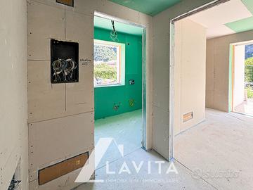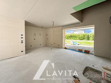 Dal soggiorno, una scala a vista porta al primo piano, dove si trovano due camere matrimoniali: la prima, anch'essa con cabina armadio, e la seconda, altrettanto spaziosa, che dispone di una cabina armadio e di accesso a una loggia ad uso esclusivo. Qui si trovano anche un locale lavanderia e un ampio bagno finestrato. Questo spazio combina comfort e funzionalità, rendendolo ideale per una vita moderna e serena.