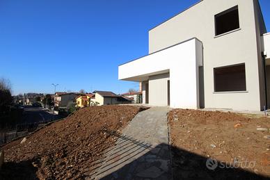 Scopri l'opportunità unica di vivere in una delle due moderne ed ampie ville situate nel cuore del paese, in un contesto residenziale esclusivo composto solo da ville. Qui, la tranquillità è assoluta e tutti i servizi sono comodamente raggiungibili a piedi. La Villa 1 offre una vista aperta e panoramica, con un piano terra di circa 78 mq che comprende un ampio e luminoso soggiorno con zona pranzo camera e servizio. Le ampie vetrate conducono al terrazzo-giardino, creando un perfetto connubio tra spazi interni ed esterni.