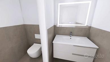 Al piano terra ti accoglie una luminosa zona living open space con cucina a vista e soggiorno, pensata per essere vissuta con praticità e comfort. Una grande vetrata conduce al giardino retrostante di 32 mq suddiviso tra veranda e area verde, perfetto per momenti di relax e convivialità. Sempre al piano terra trovi un pratico bagno con antibagno e l'accesso diretto al posto auto.