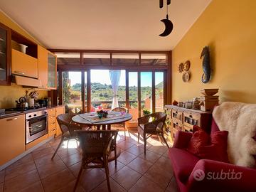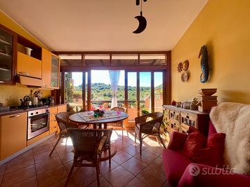 All'interno si apre un luminoso soggiorno, perfettamente collegato a un'ampia zona cucina, separata da una porta scorrevole che ne esalta la funzionalità. Da qui si accede a un comodo balcone con affaccio panoramico, ideale per godersi momenti di relax all'aperto.