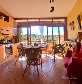La villetta offre una vista aperta sulla vallata, gode di ottima esposizione solare e si distingue per la sua atmosfera accogliente e la grande luminosità.