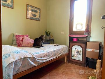 La zona giorno è servita da un bagno di servizio con doccia, mentre la zona notte comprende una camera matrimoniale, una seconda camera e un bagno finestrato.