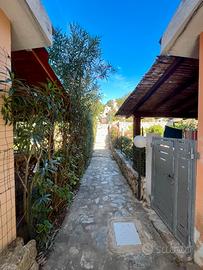 L'abitazione, leggermente rialzata rispetto al piano stradale, è raggiungibile tramite una breve scalinata e un piacevole camminamento che conduce all'ingresso principale.