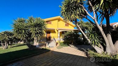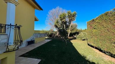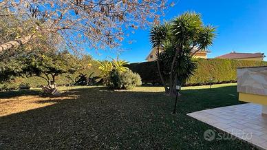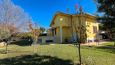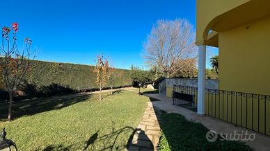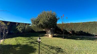 Terreno di 1.2800mq pianeggiante, prato inglese e autobloccanti curato nei particolari varie piante di tipo ornamentale mediterraneo, totalmente recintato da muro di cinta in arenaria e rete metallica e cancello automatizzato in ferro lavorato.