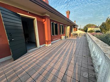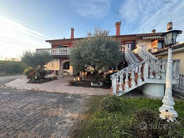 ORIAGO Per chi cerca la tranquillità, inserita nel verde della campagna, Porzione di Testa divisa in 2 abitazioni con giardino esclusivo di circa 2.650mq. L'Appartamento al Piano Terra si compone di portico di 43mq, ampio soggiorno con caminetto, cucina abitabile, 2 bagni, 2 camere matrimoniali, ripostiglio/lavanderia. L'Appartamento al Piano Primo con accesso indipendente da scala esterna, si compone di ampio soggiorno/cucina con caminetto, terrazza vivibile di 43mq, disimpegno, camera matrimoniale, bagno, oltre ad ulteriori 2 camere matrimoniali e bagno attualmente al grezzo. Ampi magazzini e 2 garage. Rif. OR4066 Cl.En. E - Ep 117,16 Kwh/mq a - Appartmento al Piano Terra Cl.En. F - Ep 316,34 Kwh/mq a - Appartmento al Piano Primo Prezzo € 345.000,00 Per maggiori informazioni o per fissare una visita chiamaci allo