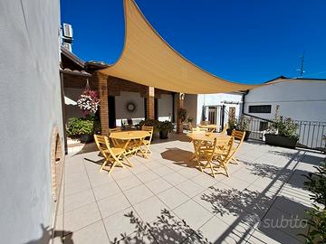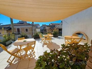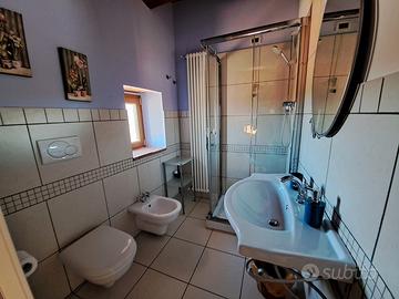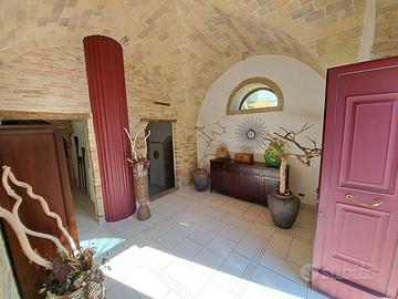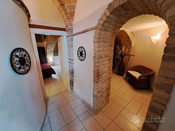 Immerso nel verde della natura, in un borgo caratteristico, proponiamo in vendita incantevole e meravigliosa porzione di casale, da cielo a terra, costruzione del 1888 con volte a cielo di carrozza, unica nella sua completezza, attualmente adibito a Bed & Breakfast, completamente ristrutturata, (con muri larghi 60 cm. ), come da normativa antisismica e risparmio energetico. Nella ristrutturazione, sono stati utilizzati, oltre ai materiali di primissima scelta, anche i materiali originali, come pietre, mattoni e travi in legno. Complessivamente la casa sviluppa circa 390 mq. e si compone su tre livelli, nel totale dispone di otto camere, nove bagni e altri tre ampi vani, inoltre un bellissimo terrazzo attrezzato al primo piano per fare le colazioni e prendere il sole in totale relax e un terrazzino al secondo piano. IRRIPETIBILE. IL TUTTO CURATO STRAORDINARIAMENTE NEI MINIMI DETTAGLI, FINEMENTE ARREDATO CON MOBILI DI PREGIO. Inoltre: