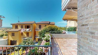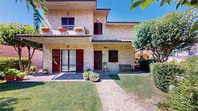ABBADIA di Osimo - In zona riservata e panoramica, proponiamo in vendita una splendida villa singola in Mattoni "Faccia a Vista" disposta su tre livelli. L'ingresso è indipendente dalla corte privata, molto curata e piantumata, in parte piastrellata ed in parte adibita a prato. Il piano terra ci accoglie nel salone, ampio, luminoso e panoramico, collegato alla cucina abitabile, dalla quale si accede al favoloso terrazzo, oltre ad una camera e bagno. Al piano superiore troviamo 3 camere da letto (due delle quali con balcone) grande bagno con vasca e doccia. Infine il piano inferiore è stato oggetto di una recente ristrutturazione trasformandolo in un grande bilocale con ingresso indipendente direttamente nel soggiorno open space, camera matrimoniale con cabina armadio, bagno, ripostiglio e lavanderia. Soluzione con ottime rifiniture e tenuta in maniera maniacale, come fosse costruita ieri. Ideale genitori/figli o per chi volesse affiancare un attività ricettiva alla vita di tutti i giorni.